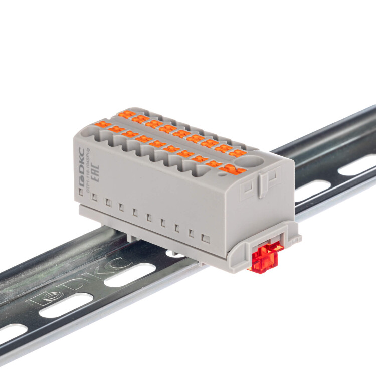 Распределительный блок с push-in зажимом и вертикальным адаптером предназначен для удобного и безопасного распределения потенциала между несколькими цепями. Имеет один ввод для проводников сечением 6 мм² и восемнадцать точек подключения по 2,5 мм². Монтаж выполняется без инструмента, установка возможна на DIN-рейку шириной 15 или 35 мм. Корпус изготовлен из полиамида 6.6 с классом горючести V0 по UL-94, обеспечивающего надежность и термостойкость. Габариты (В×Ш×Г) — 21,7×56,9×28,8 мм, цвет — серый.