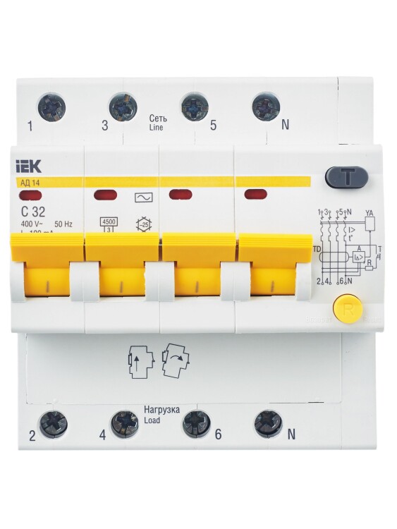 В изделиях предусмотрена индикация срабатывания от дифференциального тока, а для АД12М также светодиодная индикация включенного состояния. АД12М сохраняет работоспособность при снижении напряжения электрической сети до 110 В.
