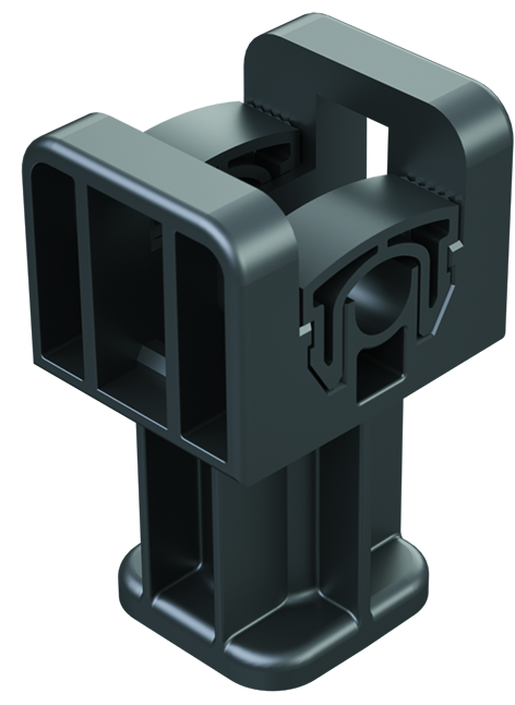 Универсальный держатель используется для крепления круглого (8 мм) или плоского (25 мм) проводника на кровле и фасадах. Конструкция держателя - разборная. Есть возможность резьбовой фиксации, крепления одним винтом. Материал - пластик.