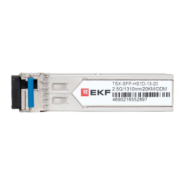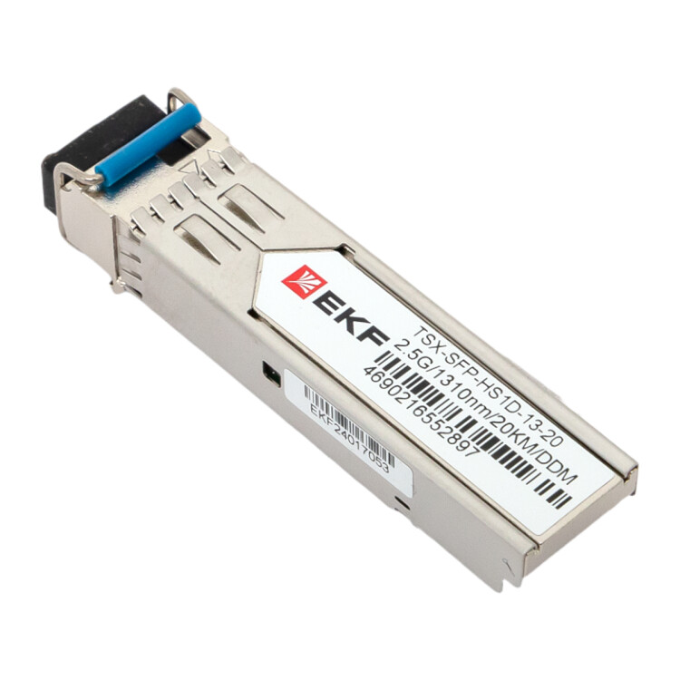 Оптический трансивер TSX-SFP-HS1D-13-20 представляет собой съемный приемопередающий оптический модуль в форм-факторе SFP (Small Form-factor Pluggable), используется для организации каналов связи по протоколам STM-8/OC-24, GigabitEthernet, номинальная скорость передачи данных составляет 2,5 Гбит/с.