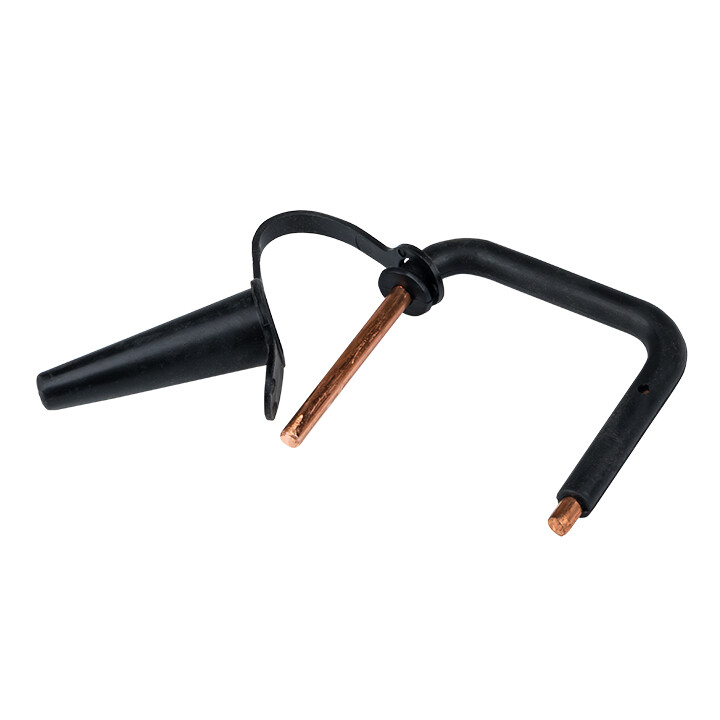 Изолированная скоба типа c-200 предназначена для замера напряжения, закорачивания или защитного заземления линии при проведении работ на ВЛИ. Устанавливается на токопроводящих и нулевых жилах СИП на весь срок службы линии. Рабочая часть изолирована защитным колпачком. Скоба устойчива к ультрафиолетовому и солнечному излучению, высоким и низким температурам, коррозии и агрессивным атмосферным воздействиям.