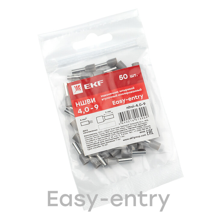 Одинарные и двойные втулочные наконечники (НШвИ и НШвИ2) EKF PROxima являются единственными специально разработанными наконечниками под опрессовку, которые полностью заменяют обязательный процесс облуживания многопроволочных медных проводов (типа ПВ-3, ПВС и т.п.) при монтаже различного электрооборудования. Втулочные наконечники состоят из медной луженой трубки, один конец которой развальцован для облегчения ввода многожильного провода и изолирующей манжеты из полипропилена.