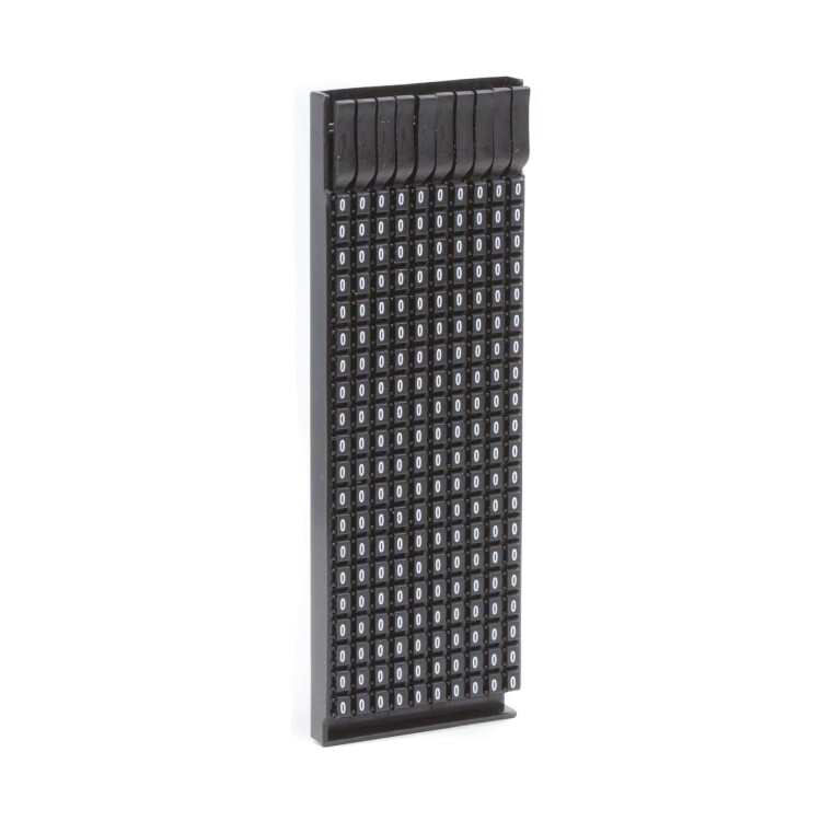 Ручная маркировка системы «Марк» (Mark) 3 для маркировки проводов без разъединения электрической цепи из полиамида 6.6. Температура эксплуатации от –40 до +100 °С. Боковые штифты надёжно фиксируют соединение друг с другом и позволяют добиться точного выравнивания маркеров. Цвет маркеров соответствует международной кодировке. Символ «0» белым цветом на чёрном маркере для сечения провода 1.5-2.5 мм². 200 маркеров в упаковке.