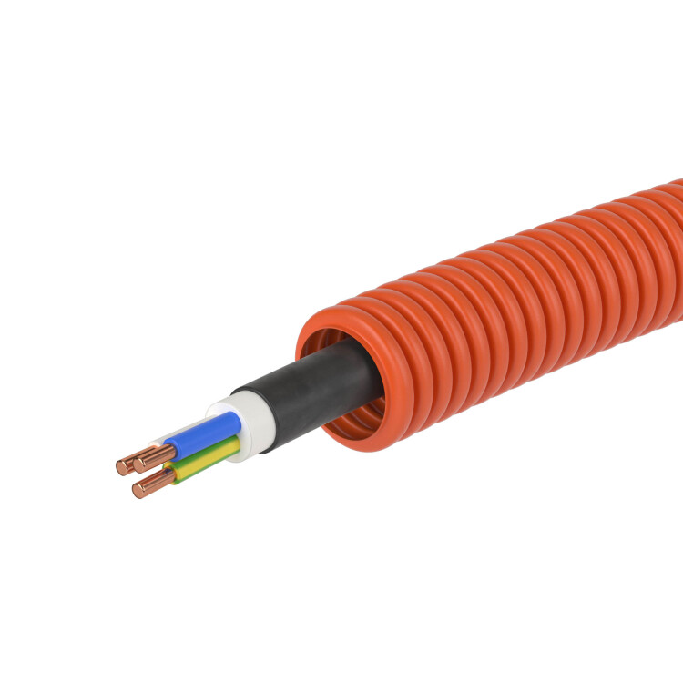 Материал - полиэтилен низкого давления. Диаметр - 16 мм. Цвет - оранжевый. Кабель - ВВГнг(А)-LS 3х1,5мм² РЭК "ГОСТ+".