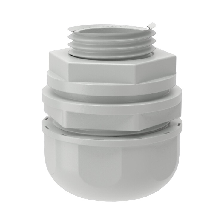 Переходник "Армированная труба - коробка" для герметичного соединения гибких армированных труб с ответвительными коробками, корпусами шкафов и боксов. Диаметр - 16 мм. Материал: полипропилен. Степень пыле- и влагозащиты IP65. Цвет серый RAL 7035. Элемент системы может эксплуатироваться при широком диапазоне температур: от –25°С до +60 °С.