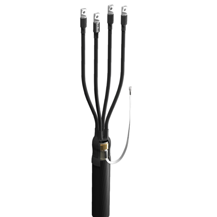 Муфта кабельная концевая ПКВ(Н)Тпб предназначена для оконцевания 4-х и 5-ти жильных силовых кабелей с пластиковой изоляцией с броней на напряжение до 1 кВ для внутренней и наружной установки. Концевая термоусаживаемая муфта состоит из термоусаживаемой перчатки, на внутреннюю поверхность которой нанесен термоплавкий клей, термоусаживаемых трубок, изолирующих жилы разделанного кабеля, манжет, проводник заземления. Для присоединения проводника заземления используется не паянный комплект, состоящий из контактной пластины (терки) и пружинки ППД. Комплект может быть представлен в нескольких вариантах: с болтовыми наконечниками, наконечниками под опрессовку на алюминиевую и медную жилу, без наконечников. В комплект муфт с болтовыми наконечниками входят алюминиевые наконечники с контактными винтами со срывающимися головками. Болтовые наконечники предусмотрены для монтажа как на алюминиевую, так и на медную жилы.