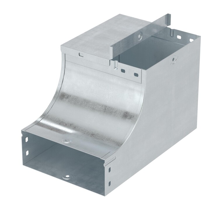 Угол применяется с лотками шириной 200 мм и высотой 80 мм. Внутренний радиус аксессуара - 100 мм. Толщина стали – 1 мм. Исполнение – "сталь, оцинкованная по методу Сендзимира". Применение комплектных аксессуаров облегчает расчет числа необходимых элементов для монтажа – в комплект уже входят соединительные пластины и детали крепежа.