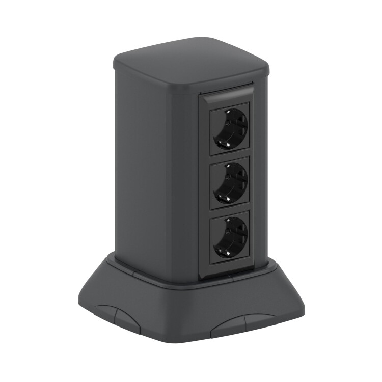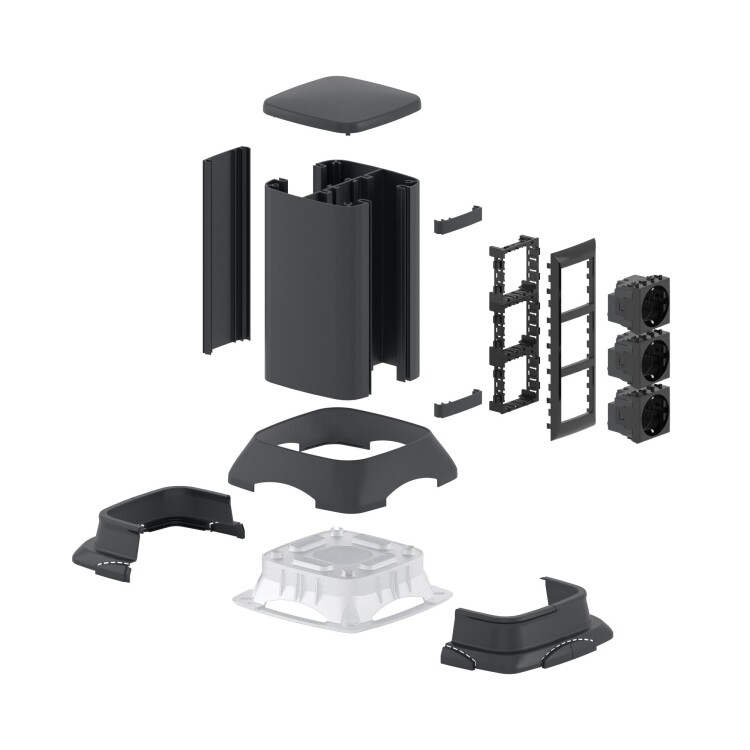 Колонны «Aero» применяются для организации рабочих мест в зонах с ограниченным пространством и в помещениях, где рабочие места расположены далеко от стен. В них устанавливаются ЭУИ серий «Avanti», ЭУИ «Вива» (Viva), «Brava». Внутреннее пространство колонны разделяется алюминиевой перегородкой на две или три секции при помощи пластикового разделителя (код 01415). Стойка высотой 0,25 м устанавливается на пол и может вмещать до 12 модулей ЭУИ. Комплект поставки: стойка колонны алюминиевая — 1 шт., крышка колонны алюминиевая — 2 шт., заглушка торцевая верхняя пластиковая — 1 шт., база на пол металлическая — 1 шт., накладка лицевая на базу пластиковая — 1 шт., накладка внутренняя на базу пластиковая –2 шт., винт — 4 шт. Каркасы и рамки для ЭУИ заказываются дополнительно. Цвет: чёрный, RAL 9005