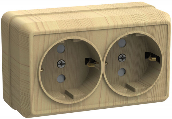 РС22-3-ОС Розетка 2местн. с з/к 16А откр.уст. ОКТАВА (сосна)