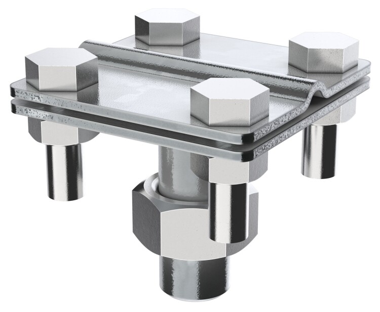 Соединитель проводника диаметром 8-10мм позволяет соединять пруток молниезащитной сетки и токоотводов в перпендикулярном и параллельном направлении, а также под произвольным углом.