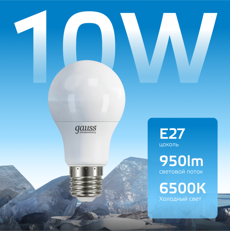 Лампа Gauss LED Elementary A60 10W E27 6500K 1/10/50