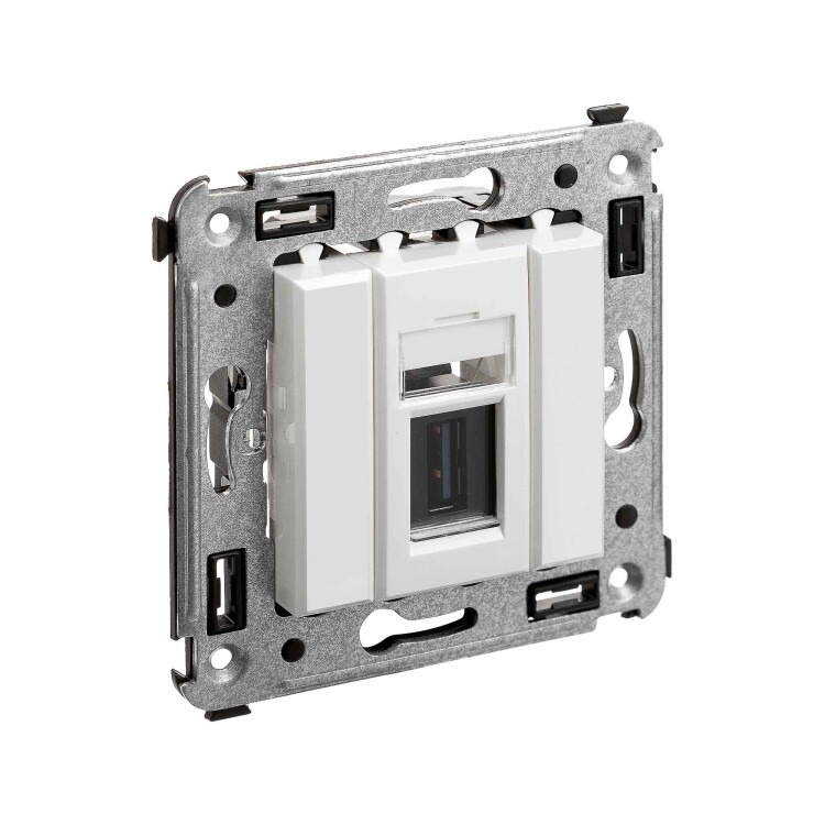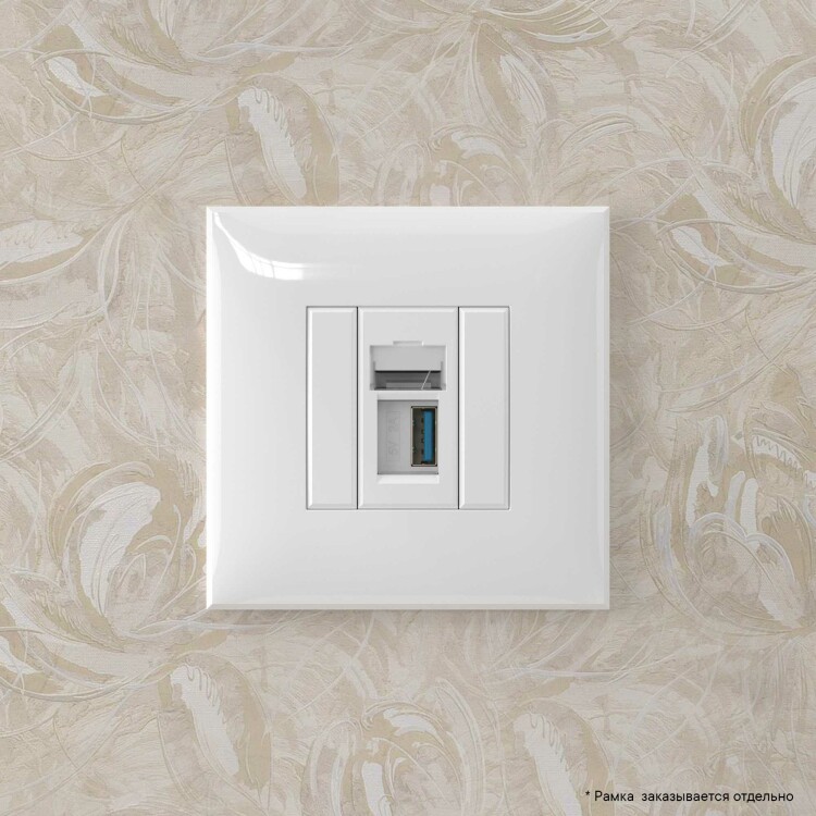 USB 3.0 ро зетка. Назначение: для монтажа в подрозеточные коробки глубиной не менее 45 мм (код 59301). Используется в качестве информационной розетки для передачи сигнала (подключение проекторов, мониторов и др.). 1 модуль. Цвет: "Белое облако". Производитель оставляет за собой право вносить во внешний вид изделия изменения, которые не влияют на его функционал, безопасность и надежность.