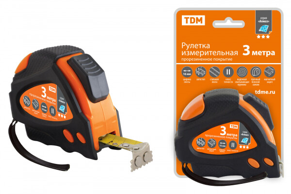 Назначение:br/Для измерения длины предметов, расстояний, проведения разметочных работ.br/Применение:br/В быту: для установки мебели, декоративных элементов и т.д.В строительстве: для укладывания элементов конструкций, разметки и т.д.В промышленности: для установки и монтажа конструкций, прокладки кабеленесущих систем.br/Преимущества:br/функция автостоп автоматическая фиксация выдвинутого измерительного полотна (в серии Алмаз)Надежная сматывающая пружина и удобный корпус.Магниты для зацепления за металлические предметы и дополнительные зубцы в крючке (в серии Рубин).Прорезь в крючке для черчения окружностей (в серии Гранит).Дополнительное усиление заклепок крючка.Удобство и долговечность-прорезиненная вставка способствует хорошему захвату инструмента и надежно защищает корпус рулетки от повреждений при паденииУтолщенное пластиковое покрытие ленты, защищающее разметку.Удобный подвес для размещения в торговом зале, который содержит всю необходимую информацию о преимуществах продукта и типе отвертки, а также штрих-кодbr/Материалы:br/Сматывающий механизм - высококачественная пружинная сталь.ПВХЛента - высококачественная прокатная сталь с полимерным покрытием, защищающим от ржавчины.br/