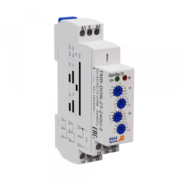 Реле времени OptiRel D TMR-DON-2T-240U-2 две задержки включения 16А 2СО 12-230АС/DC