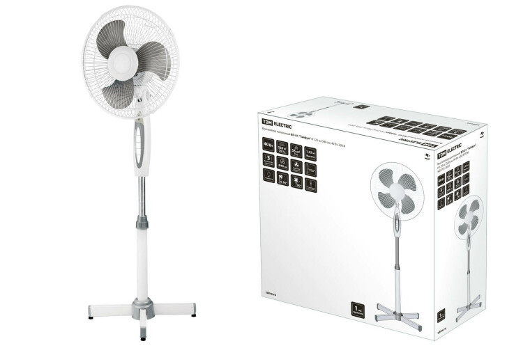 TDM Вентилятор напольный ВП-01 "Тайфун" H1,25 м, D40 см, 40 Вт, 230 В, серый