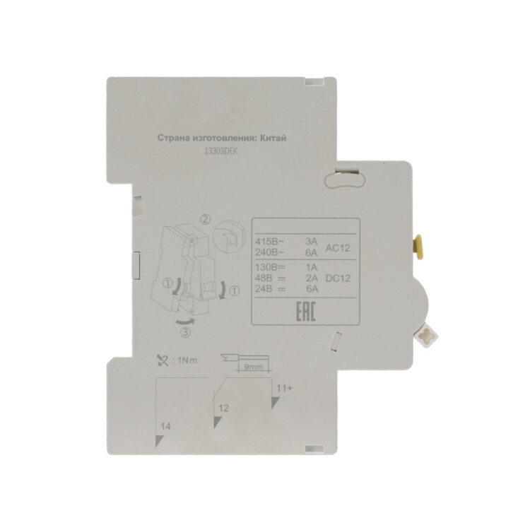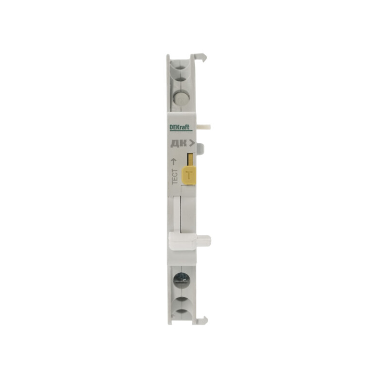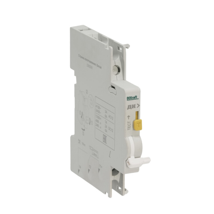 Контакт дополнительный ДК-105 для автоматических выключателей серии ВА-105 и ВА-105 DC DEKraft; предназначен для сигнализации состояния выключателя ВКЛ/ОТКЛ; тип контакта переключающий; ширина 9 мм; присоединение к выключателю слева.