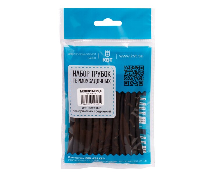 Предназначены для изоляции и антикоррозионной защиты электрических соединений;Форма поставки: наборы в нарезке длиной по 100 мм;Коэффициент усадки: 2:1;Материал: полиолефин, не поддерживает горение и не содержит галогенов;Цвет: черный;Электрическая прочность изолирующего покрытия зависит от толщины изоляции. При выборе размера термоусадочной трубки следует учитывать то, что чем больше усядет трубка, тем толще будет слой изоляции;Наборы содержат наиболее популярные монтажные размеры и идеально подходят для розничных точек продаж и экспозиции в торговых залах;Инструмент для монтажа: высокотемпературный фен ТТ-1800 или портативные бутановые г орелки КВТ;