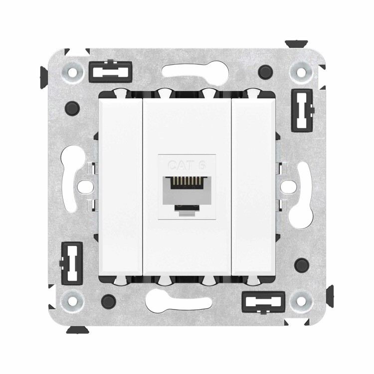 Компью терная розетка без шторки используется для подключения компьютерной техники и соединения с патч-панелью, предназначена для скрытого монтажа в стену, поставляется в комплекте с суппортом. Розетка RJ-45 категории 6 может использоваться для организации сетей с частотой до 250 МГц и передавать данные на большие расстояния. Материал розетки – металл, термопласт. Пластиковые детали изделия выполнены в цвете "Белое облако" – самом универсальном оттенке из цветовой гаммы ЭУИ "Avanti".