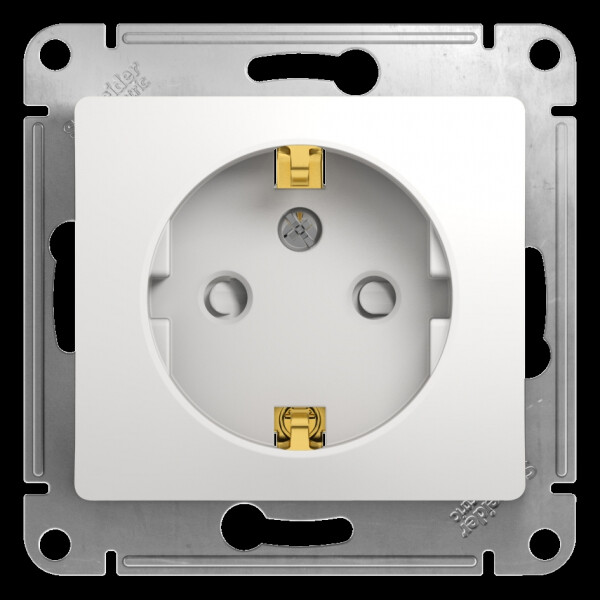 Механизм Systeme Electric (ранее Schneider Electric) серии Glossa (цвет белый) розетки одинарной с заземлением и шторками подходит для сетей 250 В, на ток 16 А. Заземляющий контакт обеспечивает дополнительную защиту от удара электрическим током. При наличии заземления электрический потенциал уходит в землю, защищая человека. Выполнен из материала PС+ASA, стойкого к УФ-излучению и появлению царапин. Эргономичные клеммы розеток расположены в один ряд. (ранее Schneider Electric ЭУИ UNICA, ЭУИ UNICA NEW MGU5.037.18ZD, NU503718)