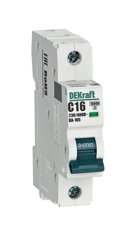 Автоматический выключатель серии ВА-105 DEKraft; 1P; ном. ток 16 А; характеристика C; откл. способность 10 кА; ширина модуля 18мм. Аппараты имеют механизм мгновенной коммутации, 6 монолитных заклепок, которые повышают прочность корпуса. Боковые каналы охлаждения повышают стабильность работы при высоких температурах окружающей среды. Есть возможность установки дополнительных аксессуаров с левой стороны устройства. Аппарат на 100% совместим с корпусами и оболочками DEKraft и Systeme Electric.
