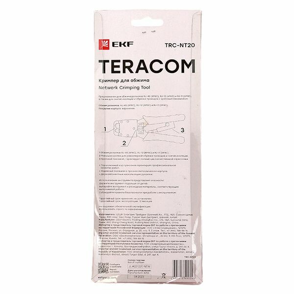 Предназначен для обжима разъемов RJ-45 (8P8C), RJ-12 (6P6C) и RJ-11 (6P4C), а также для снятия изоляции и обрезки проводов с храповым механизмом.