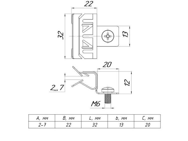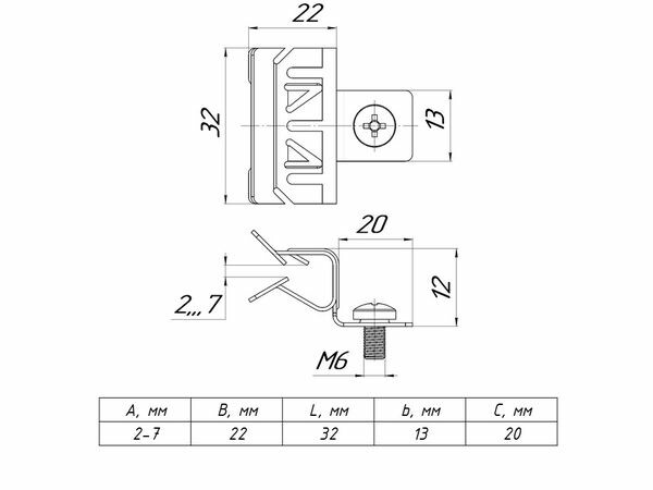 EKF PROxima Зажим балочный 3-8мм с отгибом и винтом М6х9.