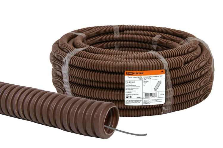 Применение:Жилые помещения (дома, квартиры и т.д.).Объекты коммерческой недвижимости (офисы, торговые центры и т.д.).Инфраструктурные объекты (больницы, школы и т.д.). Материалы:Самозатухающий ПВХПротяжка стальная проволока класса 2 диаметром 0,9 мм.Преимущества:Эксклюзивное предложение на Российском рынке. Гибкость гофрированных труб обеспечивает удобство и быстроту монтажа.Создают привлекательный внешний вид интерьера помещений, могут использоваться вместе с электроустановочными изделиями серии ЭКО.Удобная фасовка бухт по 25 м. Каждая бухта имеет транспортный стикер, на котором нанесена вся необходимая информация об изделии и штрихкод ЕАN-13. Назначение:Для прокладки электрических, телефонных и телевизионных проводов и кабеля.Для защиты от сырости и механических повреждений.Предназначены для крепления на стены, потолки. 0: