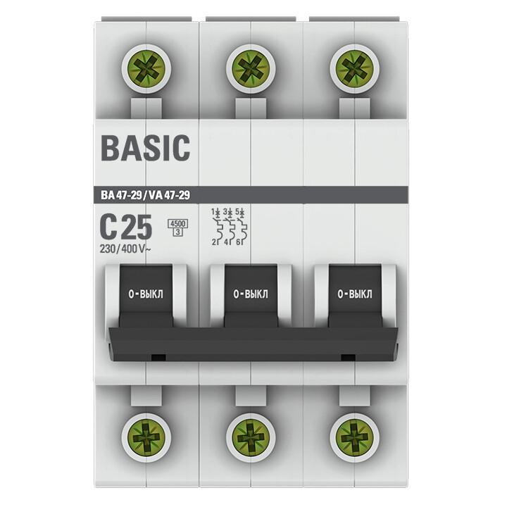 EKF Basic ВА 47-29 Автоматический выключатель (С) 3P 25А 4,5кА.