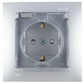 Simon 15 Алюминий Розетка с/з, со шторками, с крышкой, IP44, 16А, 250В, винт.зажим