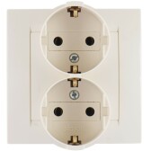 Simon 15 Бежевая Розетка 2-ая с/з литая (в сборе с рамкой)