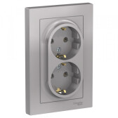 ATLASDESIGN РОЗЕТКА двойная с заземлением, 16А, в сборе, АЛЮМИНИЙ