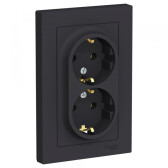 ATLASDESIGN РОЗЕТКА двойная с заземлением, 16А, в сборе, КАРБОН