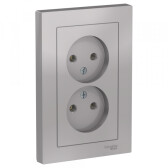 ATLASDESIGN РОЗЕТКА двойная с заземлением, 16А, в сборе, АЛЮМИНИЙ