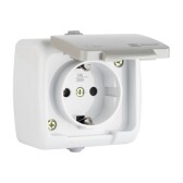 Systeme Electric Этюд наруж Бел Розетка 1-ая с/з с крышкой, с защитными шторками IP44