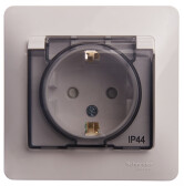 Systeme Electric Этюд наруж Серая Розетка 1-ая с/з с крышкой, с защитными шторками IP44