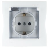 Systeme Electric Glossa Бел Розетка с/з со шторками с крышкой, IP44 (в сборе с рамкой)