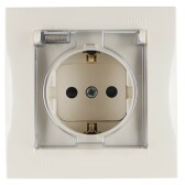 Simon 15 Бежевая Розетка 1-ая с/з с крышкой с защитными шторками, IP44 (в сборе с рамкой)