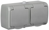 EKF PROxima Мурманск Розетка 2-местная 16А с заземлением с крышкой IP54 серый с защитными шторками.